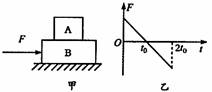 3. 如下图甲所示,A、B两物体叠放在光滑水平面上,对物体B施加一水平变力F,F-t关系如图乙所示,两物体在变力作用下由静止开始运动且始终保持相对静止,则 ( )