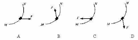 7.物体从M点向N点飞行的过程中,速度逐渐减小。在此过程中物体所受合力方向可能的是 ( )