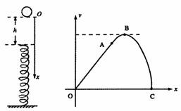 8.如图所示,劲度系数为k的轻弹簧竖直放置, 下端固定在水平地面上,一质量为m的小球,从离弹簧上端高h处自由释放,压上弹簧后与弹簧一起运动.若以小球开始下落的位置为原点,沿竖直向下建一坐标系ox,则小球的速度 v随x的变化图象如图所示.其中OA段为直线,AB段是与OA相切于A点的曲线, BC是平滑的曲线,则关于A、B、C各点对 应的位置坐标及加速度,以下说法正确的是( )