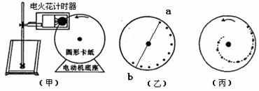 17.如图甲所示为测量电动机转动角速度的实验装置,半径不大的圆形卡纸固定在电动机转轴上,在电动机的带动下匀速转动.在圆形卡纸的旁边安装一个改装了的电火花计时器.下面是该实验的实验步骤: