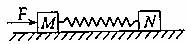 14.如下图所示,质量相同的木块M、N用轻弹簧连结并置于光滑水平面上,开始弹簧处于自然伸长状态,木块M、N静止,现用水平恒力F推木块M,用aM、aN分别表示木块M、N瞬时加速度的大小,用vM、vN分别表示木块M、N瞬时速度,则弹簧第一次被压缩到最短的过程中 ( )