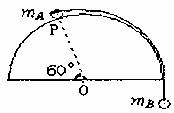 15.如下图所示,细而轻的绳两端,分别系有质量为mA、mB的球,mA静止在光滑半球形表面P点,已知P点的半径与水平面夹角60°,则mA和mB的关系是( )