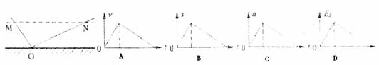 3.如图所示,光滑轨道MO和ON底端对接且ON=2MO,M、N两点高度相同,小球自M点由静止自由滚下,忽略小球经过O点时的机械能损失,以v、s、a、Ek分别表示小球的速度、位移、加速度和动能四个物理量的大小。下列图象能正确反映小球自M点到N点运动过程是 ( )