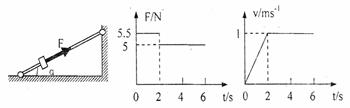 11.(8分)固定光滑细杆与地面成一定倾角,在杆上套有一个光滑小环,小环在沿杆方向的推力F作用下向上运动,推力F与小环速度v随时间变化规律如图所示,取重力加速度g=