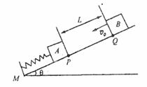 14.有一倾角为θ的斜面,其底端固定一挡板,另有三个木块A、B和C,它们的质量分别为mA=mB=m,mC=