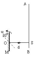 18.如图所示,点光源S到平面镜M的距离为d。光屏AB与平面镜的初始位置平行。当平面镜M绕垂直于纸面过中心O的转轴以ω的角速度逆时针匀速转过300时,垂直射向平面镜的光线SO在光屏上的光斑P的即时速度大小为 。