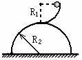 (2)(9分)如图所示,从光滑的1/4圆弧槽的最高点滑下的小球,滑出槽口时速度为水平方向,槽口与一个半球顶点相切,半球底面为水平,若要使小球滑出槽口后不沿半球面下滑。已知圆弧槽的半径为R1,半球的半径为R2,则(1)R1与R2应满足什么关系?(2)小球过圆弧槽的最低点时对槽的弹力为多少?