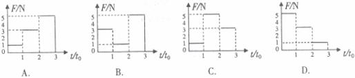现对物体施加一个大小变化、方向不变的水平力F,为使物体在3t0时间内发生的位移最大,力的大小变化情况应如下面的哪一幅图所示(g取