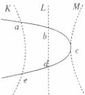 21.图中K、L、M为静电场中的三个相距很近的等势面。一带电粒子射入此静电场中后,依。a→b→c→d→e轨迹运动。已知电势