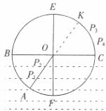 22.(18分)(1)某研究性学习小组的同学设计了一个测量液体折射率的仪器,如图所示。在一个圆盘上,过其圆心O作两条相互垂直的直线BC、EF,在半径OA上,垂直盘面插上两枚大头针P1、P2并保持P1、P2位置不变,每次测量时让圆盘的下半部分竖直进入液体中而且总使得液面与直径BC相平,EF作为界面的法线。而后在图中右上方区域观察.P1、P2的像,并在圆周上插上大头针P3,使只正好挡住P1、P2,同学们通过计算,预先在圆周EC部分刻好了折射率的值,这样只要根据P3所插的位置,就可直接读出液体折射率的值。则