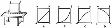 5.如图所示,光滑水平桌面上,一小球以速度v向右匀速运动,当它经过靠近桌边的竖直木板ad边前方时,木板开始作自由落体运动。若木板开始运动时,cd边与桌面相齐,则小球在木板上的投影轨迹是 ( )