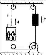 9.如图是一种升降电梯的示意图,A为载人箱,B为平衡重物,它们的质量均为M,上下均有跨过滑轮的钢索系住,在电动机的牵引下使电梯上下运动.如果电梯中载人的质量为m,匀速上升的速度为v,电梯即将到顶层前关闭电动机,依靠惯性上升h高度后停止,在不计空气和摩擦阻力的情况下,h为: ( )