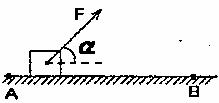 19.如下图所示,质量为m的小物块,在与水平方向成α角的力F的作用下,沿光滑水平面运动,物块通过A点和B点的速度分别是vA和vB,物块由A运动到B的过程中,力F对物块做功W和力F对物块作用的冲量I的大小是 ( )