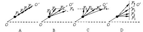 8.如图所示,小车上固定着硬杆OO'(小车未画出),杆的端点固定着一个质量为m的小球。当小车水平向右的加速度由零逐渐增大时,杆对小球的作用力的变化(用F1至F4变化表示)可能是下图中的 ( )