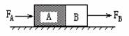 2.如图在光滑水平面上放着紧靠在一起的AB两物体,B的质量是A的2倍,B受到向右的恒力FB=2N,A受到的水平力FA=(9-2t)N,(t的单位是s)。从t=0开始计时,则:( )