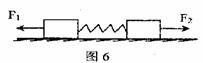9.如图6所示,在光滑的水平地面上,有两个质量相等的物体,中间用劲度系数为k的轻质弹簧相连,在外力作用下运动,一直F1>F2,当运动打到稳定时,弹簧的伸长量为( )