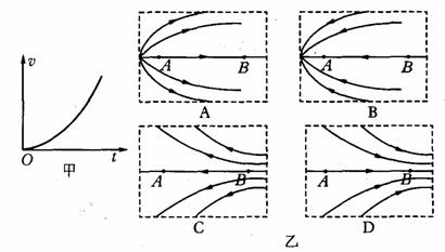 3.一负电荷从电场中A点由静止释放,只受电场力作用,沿电场线运动到B点,它运动的v-t图象如图甲所示,则两点A、B所在区域的电场线分布情况可能是图乙中的( )