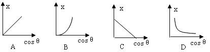 4.如图所示 ,一根轻弹簧上端固定在O点,下端拴一个钢球P,球处于静止状态,现对球施加一个方向向右的外力F,使球缓慢偏移,在移动的每一时刻,都可以认为钢球处于平衡状态,若外力F方向始终水平,移动中弹簧与竖直方向的夹角θ< 900,且弹簧的伸长不超过弹性限度,则下面给出的弹簧伸长量x与cosθ的数关系图像中,最接近的是 ( )