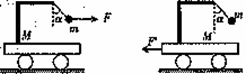10.如图所示,质量为M 的小车放在光滑的水平面上.小车上用细线悬吊一质量为m的小球,M>m.现用一力F水平向右拉小球,使小球和车一起以加速度a向右运动时,细线与竖直方向成α角,细线的拉力为T;若用一力F’水平向左拉小车,使小球和车一起以加速度a’向左运动时,细线与竖直方向也成α角,细线的拉力为T’.则( )