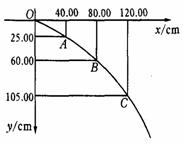 15.某同学通过实验对平抛运动进行研究,他在竖直墙上记录了抛物线轨迹的一部分,如图所示.O点不是抛出点,x轴沿水平方向,由图中所给的数据可求出平抛物体的初速度是 m/s,抛出点的坐标x= m, y= m (g取