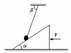 角的细线系住,斜面体位于光滑水平面上,用水平力F缓慢地向左推物体,