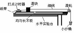 17.某探究学习小组的同学欲验证“动能定理”,他们在实验室组装了一套如图所示的装置,另外他们还找到了打点计时器所用的学生电源一台,导线、复写纸、纸带、垫块、细沙若干.当滑块连接上纸带,用细线通过滑轮挂上空的小沙桶时,释放小桶,滑块处于静止状态.若你是小组中的一位成员,要验证滑块所受合外力做的功等于其动能的变化,则: