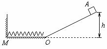 18.如图所示,光滑坡道顶端距水平面高度为h,质量为m的小物块A 从坡道顶端由静止滑下,进入水平面上的滑道,经过O点时无机械能损失,为使A制动,将轻弹簧的一端固定在竖直墙上的M点,另一端恰位于滑道的末端O点。已知在OM段,物块A与水平面间的动摩擦因数均为μ,其余各处的摩擦不计,重力加速度为g,求: