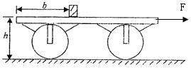 ,如图所示,现在始终对平板车施加一水平方向的恒力F=500N,使车向前行驶,结果物块从车板上滑落,不计路面与平板间以及轮轴之间摩擦,取g=