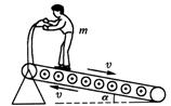 9.如图所示是键身用的“跑步机”示意图,一质量为m的运动员踩在与水平面成α角的静止皮带上,运动员用力向后蹬皮带,皮带运动过程中受到的作用力如为f,使皮带以速度v匀速向后运动,则在运动过程中,下列说法中正确的有 ( )