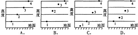3.四个小球在离地面不同高度同时从静止释放,不计空气阻力,从开始运动时刻起每隔相等的时间间隔,小球依次碰到地面.下列各图中,能反映出刚开始运动时各小球相对地面的位置的是 ( )