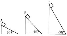 4.如图所示,三个固定的斜面底边长度都相等,斜面倾角分别为30°、45°、60°,斜面的表面情况都一样。完全相同的物体(可视为质点)A、B、C分别从三斜面的顶部滑到底部的过程中 ( )