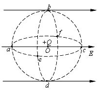 7.如图所示匀强电场E的区域内,在O点处放置一点电荷+Q,a、b、c、d、e、f为以O点为球心的球面上的点,aecf平面与电场线平行,bedf平面与电场线垂直,则下列说法中正确的是 ( )