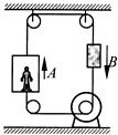 10.如图所示是一种升降电梯的示意图,A为载人箱,B为平衡重物,它们的质量均为M,上下均有跨过滑轮的钢索系住,在电动机的牵引下使电梯上下运行。已知电梯中所载人的质量为m,匀速上升的速度为v,在电梯到顶层前关闭电动机,电梯依靠惯性还能上升h的高度而停止。不计钢索与滑轮之间的摩擦,关于电梯配平衡重物的主要目的和上升高度h,下列说法正确的是 ( )