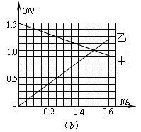 (1)根据两位同学描绘的直线,可知图线 (填“甲”或“乙”)是根据电压表V1和电流表A的数据所描绘的。