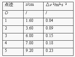 (1)该同学在一条比较理想的纸带上,从点迹清楚的某点开始记为O点,顺次选取5个点,分别测量这5个点到O之间的距离,并计算出它们与O点之间的速度平方差△v2(△v2=v2-v02),填入下表: