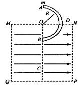 18.(10分)如图所示,矩形区域MNPQ内有水平向右的匀强电场,虚线框外为真空区域;半径为R、内壁光滑、内径很小的绝缘半圆管ADB固定在竖直平面内,直径AB垂直于水平虚线MN,圆心O恰在MN的中点,半圆管的一半处于电场中.一质量为m,可视为质点的带正电,电荷量为q的小球从半圆管的A点由静止开始滑入管内,小球从B点穿出后,能够通过B点正下方的C点.重力加速度为g,小球在C点处的加速度大小为