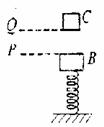 15.固定在水平面上的竖直轻弹簧,上端与质量为M的物块B相连,整个装置处于静止状态时,物块B位于P处,如图所示。另有一质量为m的物体C,从Q点处自由下落,与B相碰后立即具有相同的速度,但不粘连;然后B、C一起运动,将弹簧进一步压缩后,物块B、C又被反弹。有下列几个结论:
