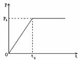 4.汽车发动机的额定功率为P1,它在水平路面上行驶时受到的摩擦阻力f大小恒定,汽车在水平路面上由静止开始运动,直到车速达到最大速度Vm。汽车发动机的输出功率随时间变化的图象如下图所示。若在0~t1时间内,汽车发动机的牵引力是恒定的,则