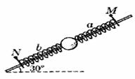 10.如下图所示,倾角为30°的光滑杆上套有一个小球和两根轻质弹簧,两弹簧的一端各与小球相连,另一端分别用销钉M、N固定于杆上,小球处于静止状态.设拔去销钉M(撤去弹簧a)瞬间,小球的加速度大小为6m/s2.若不拔去销钉M,而拔去销钉N(撤去弹簧b)瞬间,小球的加速度可能是(g取10m/s2)