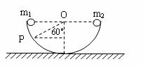 13.半圆形光滑轨道固定在水平地面上,如下图所示,并使其轨道平面与地面垂直,物体m1.m2同时由轨道左、右最高点释放,二者碰后粘在一起向左运动,最高能上升到轨道P点,已知OP与竖直方向夹角为60°,则两物体的质量之比m1∶m2为
