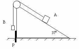 1.(10分)倾角为37°的斜面体靠在固定的竖直挡板P的一侧,一根轻绳跨过固定在斜面顶端的定滑轮,绳的一端与质量为mA=