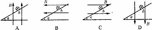 6.如图所示,质量为m的通电导体棒ab置于倾角为θ的导轨上。若已知导体棒与导轨间的动摩擦因数为μ,在下图所示的各种磁场中,导体棒均处于静止状态,则导体棒与导轨间的摩擦力可能为零的是 ( )