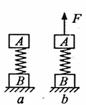 12.如图a所示,水平面上质量相等的两木块A、B用一轻弹簧相连接,整个系统处于平衡状态。现用一竖直向上的力F拉动木块A,使木块A向上做匀加速直线运动,如图b所示。研究从力F刚作用在木块A的瞬间到木块B刚离开地面的瞬间这个过程,并且选定这个过程中木块A的起始位置为坐标原点,则下列图象中可以表示力F和木块A的位移x之间关系的是 ( )
