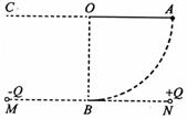 17.(14分)如图所示,等量异种点电荷,固定在水平线上的M、N两点上,电荷量均为Q,有一质量为m电荷量为+q(可视为点电荷)的小球,固定在长为L的绝缘轻质细杆的一段,细杆另一端可绕过O点且与MN垂直的水平轴无摩擦地转动,O点位于MN的垂直平分线上的距MN为L处,现在把杆拉起到水平位置,由静止释放,小球经过最低点B时速度为v,取O处电势为零,忽略q对+Q、―Q形成电场的影响。求: