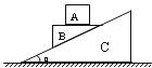 6. 如图所示,大三角劈C置于水平地面上,小三角劈B置于斜面上,B的上面又放一小木块A,在A、B一起匀速下滑的过程中(C不动),下列说法正确的是 ( )