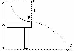 21、(10分)如图所示,固定的1/4圆弧光滑轨道,半径为R,OB沿竖直方向,上端A距地面高为H,质量为m的小球从A点由静止释放,最后落在地面上C点处,不计空气阻力,求: