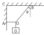 16.如图所示,用轻绳AO和OB将重为G的重物悬挂在水平天花板和竖直墙壁之间处于静止形态,AO绳水平,OB绳与竖直方向的夹角为θ。则AO绳的拉力T1、OB绳的拉力T2的大小与G之间的关系为
