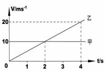 19.水平地面上两个质点甲和乙,同时由同一地点沿同一方向作直线运动,它们的v-t图线如图所示。下列判断正确的是