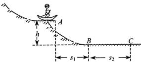 一个质量60kg的滑雪运动员从高20 m的高台上水平滑出,落在水平地面上的B点,由于落地时有机械能损失,落地后只有大小为10 m/s的水平速度,滑行到C点后静止,如图所示。已知A与B、B与C之间的水平距离30 m40m,g=10m/s2,不计空气阻力。求: