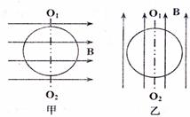 8.甲、乙两个完全相同的铜环均可绕竖直固定轴O1O2旋转,现让它们以相同角速度同时开始转动,由于阻力作用,经相同的时间后停止,若将圆环置于如图所示的匀强磁场中,甲环的转轴与磁场方向垂直,乙环的转轴与磁场方向平行,现让甲、乙两环同时以相同的初始角速度开始转动后,下列判断正确的是 ( )